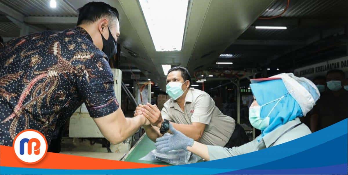 AHY dan Annisa berkeliling pabrik sambil menyapa para pekerja, sambil melihat-lihat proses quality control dan pengepakan barang.