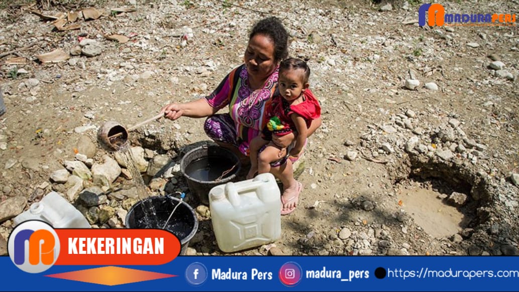 Sampang – Bencana kekeringan melanda warga Dusun Berek Songai, Desa Pandiyangan, Kecamatan Robatal, Kabupaten Sampang, warga sulit mendapatkan air bersih.