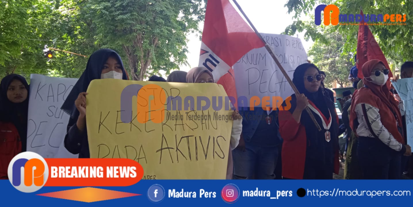 Sumenep – Sejumlah mahasiswa dan pemuda yang tergabung dalam organisasi Gerakan Mahasiswa Ekstra Parlemen (Gempar) dan Gerakan Mahasiswa Nasional Indonesia (GMNI) menggelar aksi demonstrasi di depan kantor Polres Sumenep, Madura, Jumat (22/10/2021) pagi.