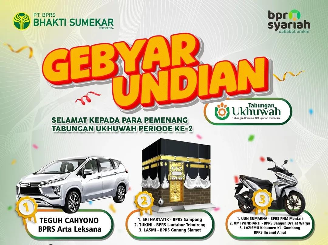 “Gebyar Undian Tabungan Ukhuwah ini diharapkan semakin meningkatkan antusiasme masyarakat untuk menabung dan berinvestasi demi masa depan yang lebih cerah. BPRS Bhakti Sumekar juga menegaskan akan terus menghadirkan inovasi dan program menarik guna memberikan manfaat lebih bagi seluruh nasabahnya,” pungkasnya.
