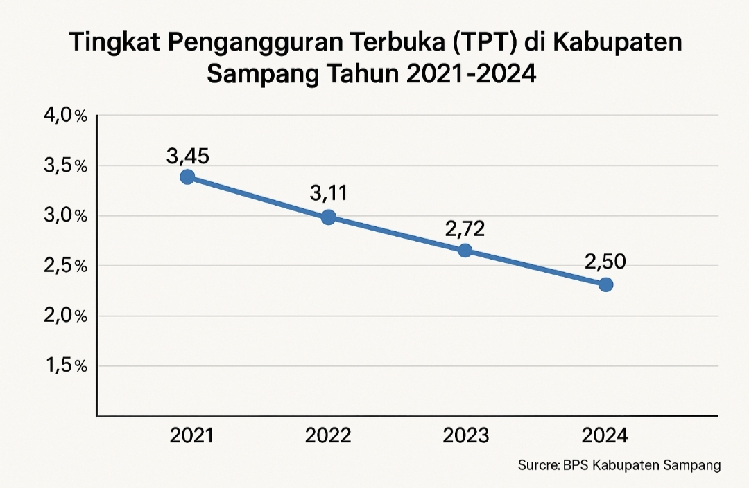 Sampang – Tingkat Pengangguran Terbuka (TPT) di Kabupaten Sampang, berdasarkan data Badan Pusat Statistik (BPS) Kabupaten Sampang, mengalami fluktuasi dalam kurun waktu 2021 hingga 2024. Tren ini mencerminkan dinamika pasar tenaga kerja yang dipengaruhi oleh faktor ekonomi, sosial, dan pendidikan.