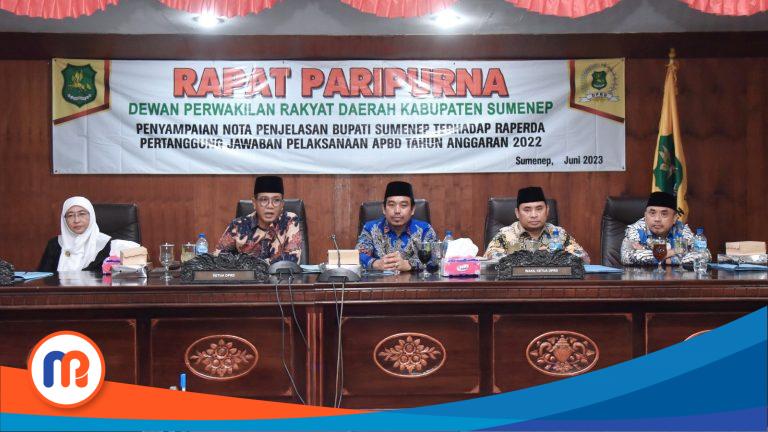 Sumenep – Dewan Perwakilan Rakyat Daerah (DPRD) Kabupaten Sumenep menggelar Rapat Paripurna dengan agenda Penyampaian Nota Penjelasan Bupati Sumenep terhadap Raperda Pertanggungjawaban pelaksanaan Anggaran Pendapatan Belanja Daerah (APBD) Tahun Anggaran (TA) 2022.