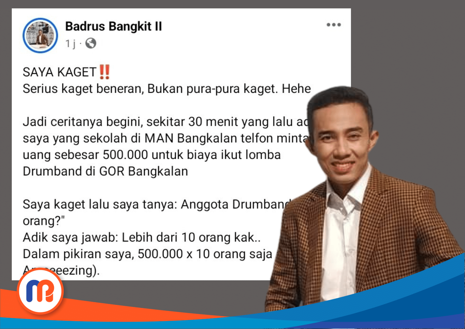 Pukul 14.30 WIB, Badrus Bangkit II mengunggah status dengan tanda seru berwarna merah yang mencengangkan: “SAYA KAGET‼️”. Ia menegaskan bahwa kekagetannya kali ini adalah sungguhan, bukan sekadar pura-pura. Badrus kemudian membagikan kisah adiknya yang sekolah di MAN Bangkalan dan meminta uang sejumlah 500.000 rupiah untuk ikut serta dalam sebuah lomba Drumband di GOR Bangkalan.