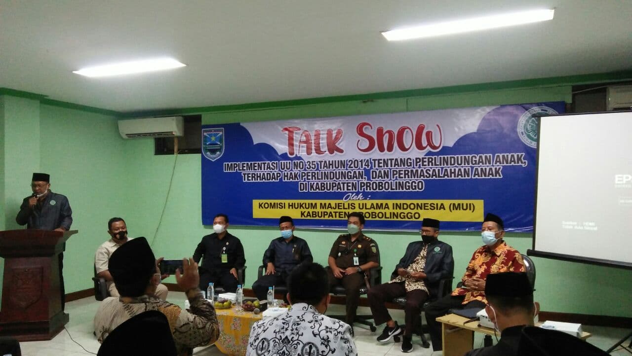 Probolinggo – Komisi Hukum Majelis Ulama (MUI) Kabupaten Probolinggo menyelenggarakan kegiatan “Talk Show” Implementasi UU No. 35 Tahun 2014 tentang Perubahan atas UU No. 23 Tahun 2002 tentang Perlindungan Anak terhadap Hak dan Perlindungan Anak di Kabupaten Probolinggo, Selasa (21/12/2021).