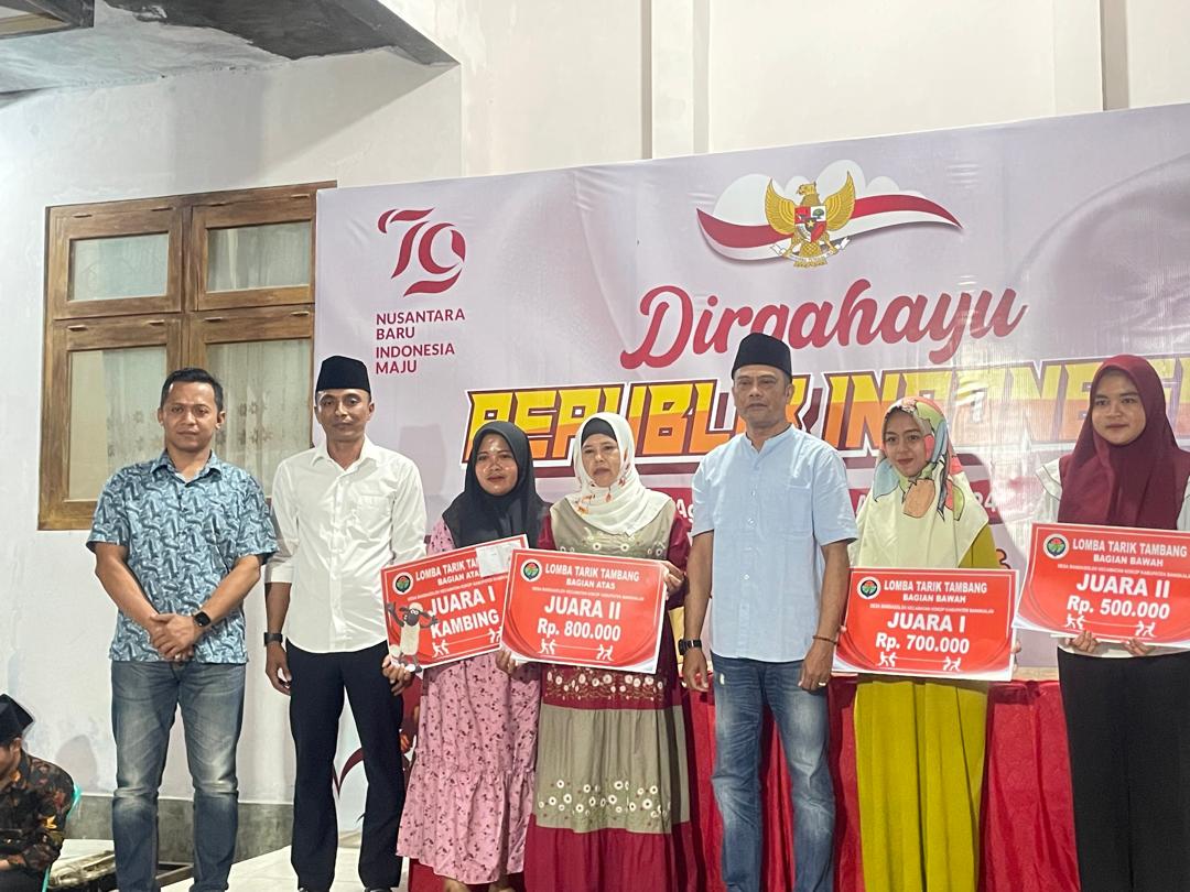 Pemberian hadiah bagi pemenang lomba di acara malam puncak sekaligus penutupan HUT Kemerdekaan RI yang ke-79 oleh Pemdes Bandasoleh belangsung lancar dan sukses.
