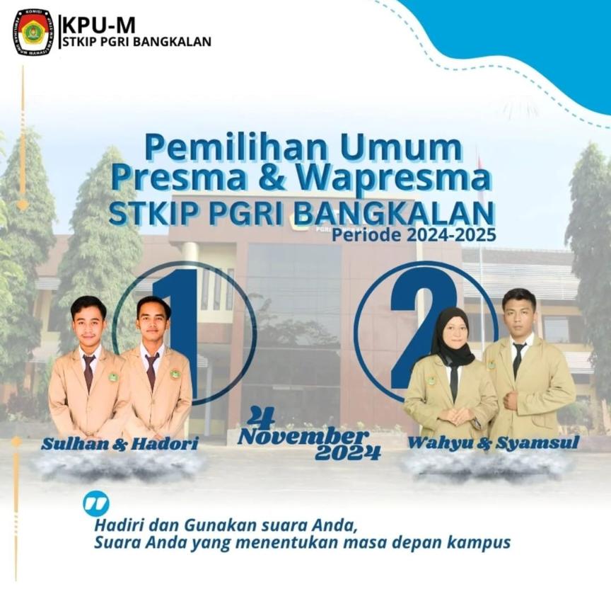 Dua pasangan Pemilihan Presiden Mahasiswa dan Wakil Presiden Mahasiswa (Presma dan Walresma) STKIP PGRI Bangkalan nomor urut 01 Pasangan Sulhan & Hadori, pasangan nomor urut 02 Wahyu & Syamsul berujung kisruh