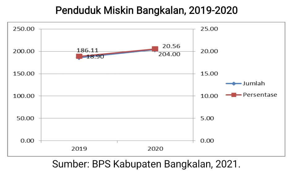 Dengan demikian, pandemi Covid-19 meningkatkan jumlah penduduk miskin di Bangkalan. Meski, di tahun 2020 kebijakan recofusing anggaran daerah, relokasi belanja daerah, dan pembatasan sosial untuk penanganan pandemi Covid-19 dilakukan di Bangkalan ternyata tetap tidak mampu meningkatkan kondisi ekonomi masyarakat. Dampak buruknya, jumlah penduduk miskin di Bangkalan meningkat.