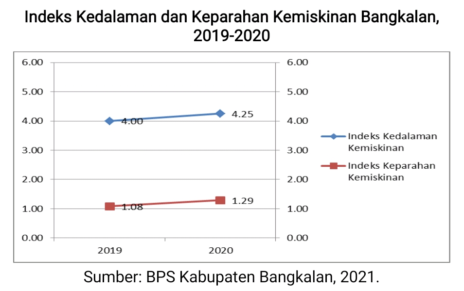 Tingkat kedalaman dan keparahan kemiskinan di Bangkalan, datanya terlihat pada indeks kedalaman dan keparahan kemiskinan BPS Bangkalan tahun 2021.