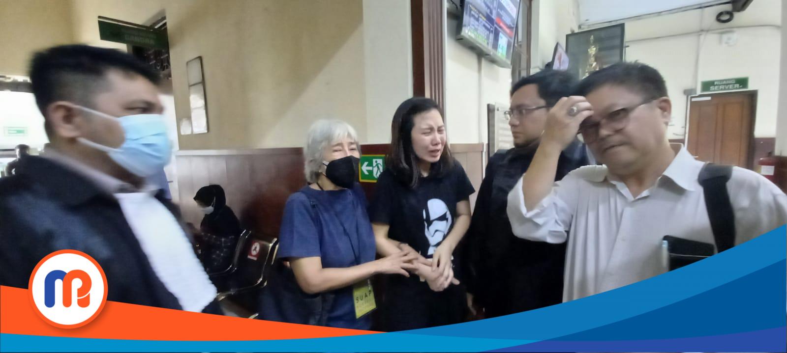 Dian Seicilla (berbaju hitam) istri dari Terdakwa Irwan Tanaya menangis setelah mengetahui tuntutan JPU pengganti I Gede Willy Pramana (Sumber Foto : Fajar Yudha Wardhana)