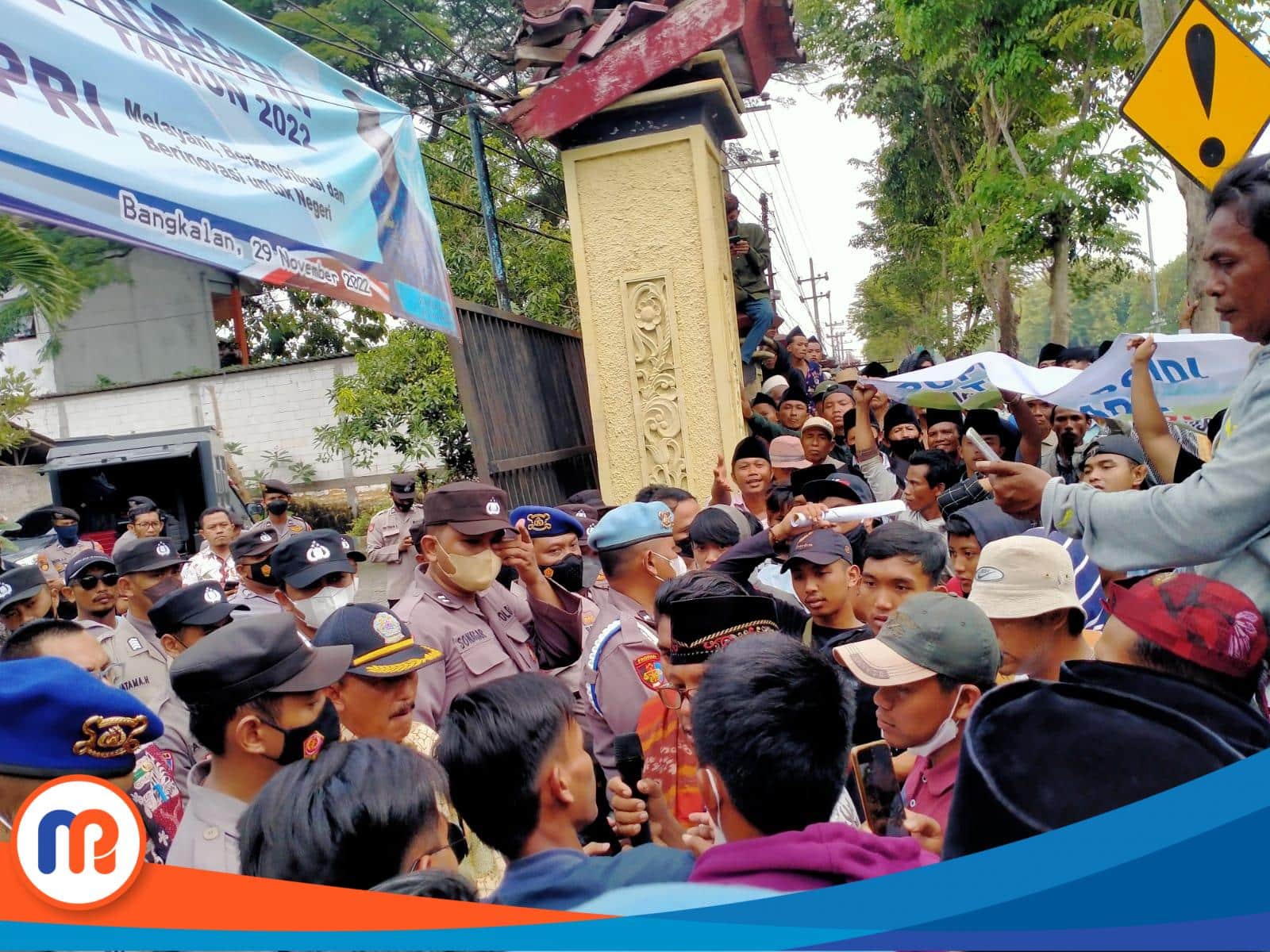 Bangkalan – Ribuan massa aksi yang tergabung dalam Aliansi Pemuda dan Masyarakat Tani (AP&MT) mendatangi kantor Dinas Pertanian Kabupaten Bangkalan, Madura, Jawa Timur. Massa geruduk kantor dins ini karena kelangkaan pupuk bersubsidi yang dialami oleh petani, Kamis (24/11/2022).