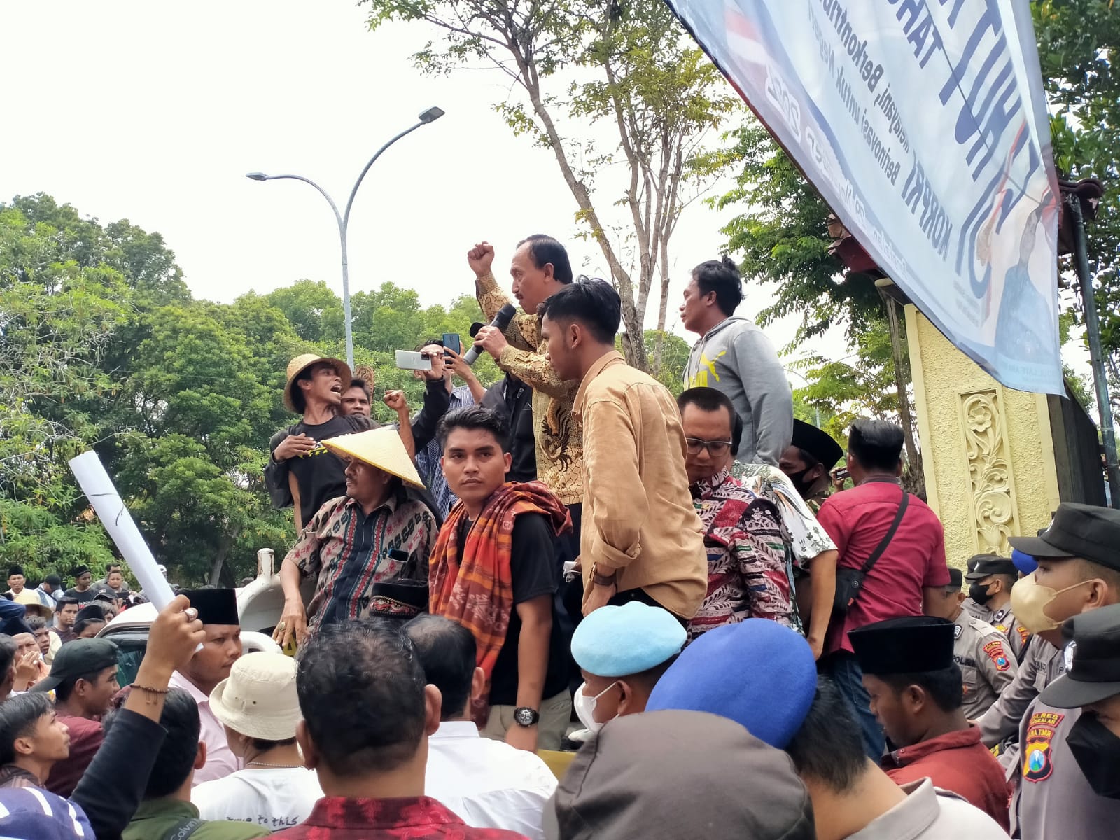 “Salah satu penyebab keterlambatan pupuk ini disebabkan pendistribusian pupuk banyak yang bermain. Tentu ini sangat merugikan masyarakat luas. Tentu masyarakat akan mengalami kegagalan dalam bertani dan bercocok tanam. Lantas apa yang mau mereka makan? Karena bertani merupakan mata pencaharian utama mereka untuk bekal hidup selama satu tahun kedepannya,” teriak Kholil dalam orasinya.