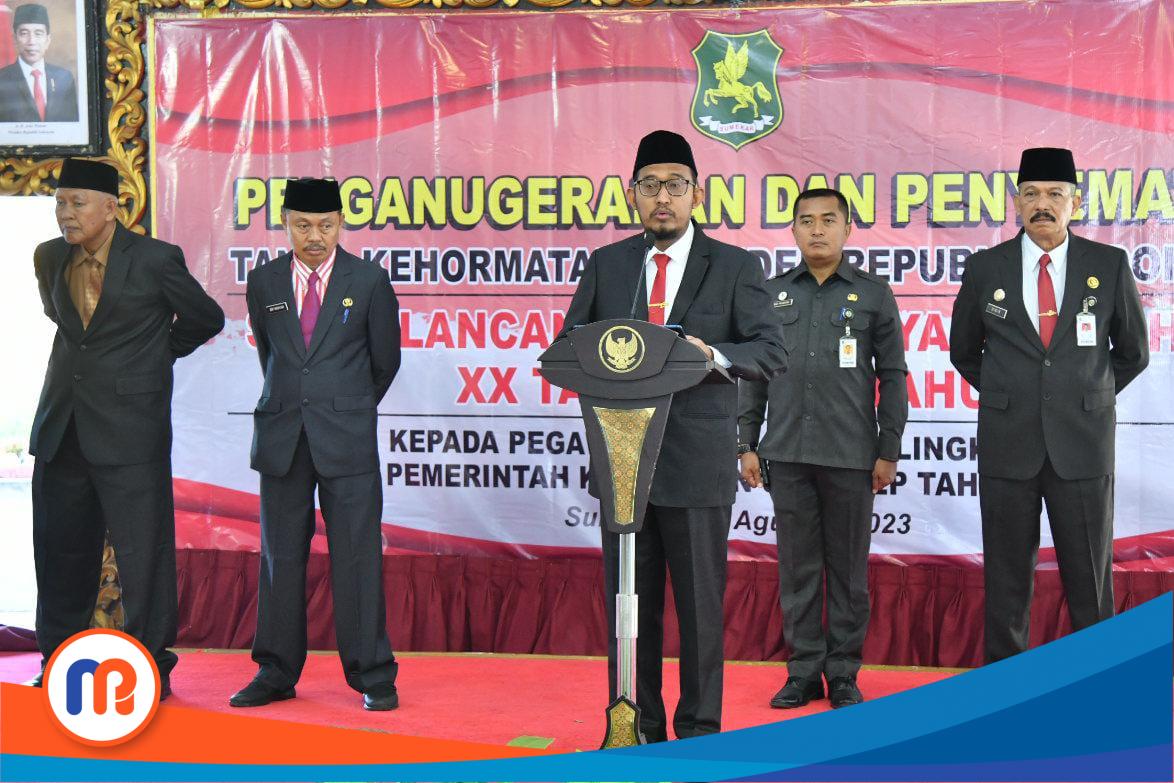 Sumenep – Pemerintah Kabupaten (Pemkab) Sumenep, Madura, Jawa Timur, serahkan Tanda Kehormatan Satyalancana Karya Satya, di Pendopo Agung Keraton Sumenep, Senin (14/08/2023).