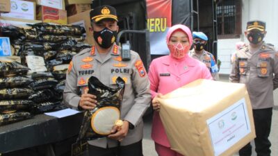 Kapolrestabes Surabaya, Kombes Pol Akhmad Yusep Gunawan, S.H., S.I.K., M.H., M.Han didampingi Ketua Bhayangkari Cabang Kota Besar Surabaya, Nyonya Gita Yusep