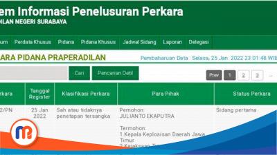 Surabaya – Pengadilan Negeri (PN) Surabaya menggelar sidang Praperadilan, Kamis…